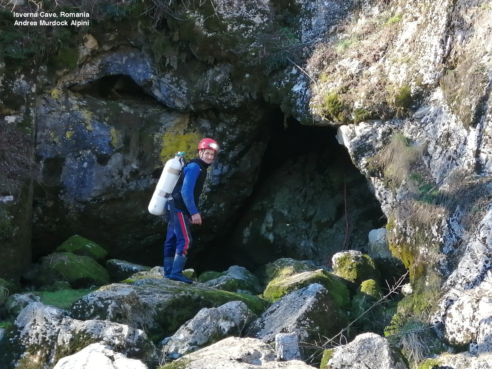 Che colore ha la felicità? Oggi per me ha avuto il colore della roccia e dell’acqua di Isverna, ma soprattutto quello della roccia. Il mattino presto ho approcciato la grotta dall’esterno. Una parete verticale di tre metri circa, ricoperta di scivolosi muschi e licheni, cela l’ingresso all’antro. In alto, una porticina in ferro arrugginito si scosta e la visuale si apre sui primi quindici metri aerei di grotta.