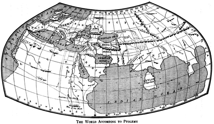 L’Equatore indicava per Tolomeo il parallelo di grado zero, mentre il meridiano fondamentale, ovvero la linea di longitudine di grado zero, era il meridiano che passava per le Isole Fortunate (oggi Isole Canarie).