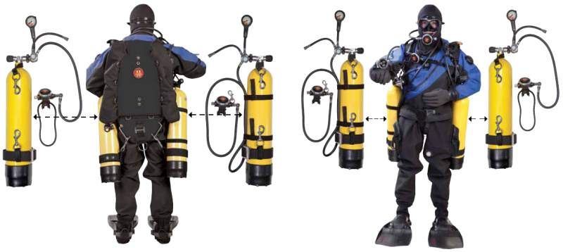 Ogni subacqueo usa l’attrezzatura in modo esclusivo; nessun tipo di condivisione è previsto ad esclusione delle bombole. Per limitare il rischio di dover condividere il gas in immersione in caso di problemi agli erogatori di uno dei subacquei, ogni operatore usa una configurazione ad alta ridondanza con due bombole separate da un manifold, e due erogatori indipendenti (primo e secondo stadio).