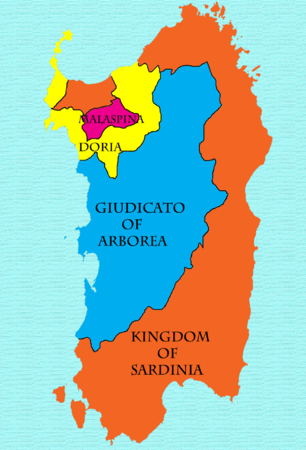 L’unica entità statale autoctona era il Giudicato di Arborea (rennu de Arbaree in lingua sarda), uno dei quattro Stati indipendenti che si formarono in Sardegna alla dissoluzione in occidente dell’impero bizantino, che si era alleato della Corona d’Aragona.