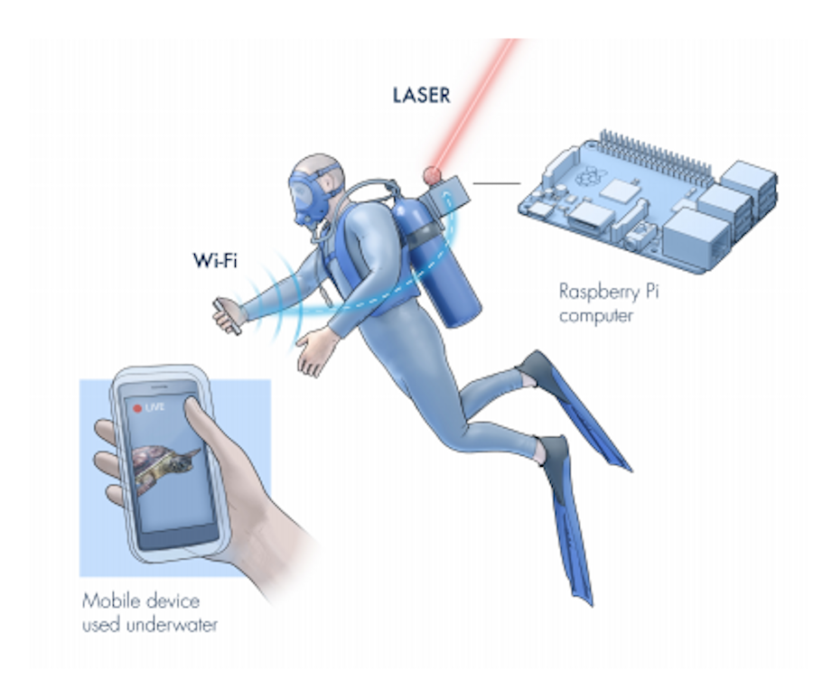 Ecco come funziona: supponiamo di avere un dispositivo subacqueo per la trasmissione di dati (i ricercatori del KAUST hanno utilizzato degli smartphone impermeabilizzati) il problema è come inviare un segnale Wi-Fi per connettere il dispositivo a un dispositivo che funga da “modem” subacqueo. Per le sperimentazioni è stato usato un Raspberry Pi, un single-board computer sviluppato nel Regno Unito dalla Raspberry Pi Foundation e progettato per ospitare sistemi operativi basati sul kernel Linux o RISC OS ed utilizzante un sistema operativo dedicato, chiamato Raspbian. In pratica il Raspberry Pi converte il segnale wireless ricevuto dallo smartphone in un segnale ottico (in questo caso, un segnale laser) che viene trasmesso ad un ricevitore/trasmettore collegato ad una boa in superficie. Il passo successivo è stato più seplice in quanto ha utilizzato delle tecniche di comunicazione consolidate per inviare il segnale ad un satellite in orbita. Affinché il dispositivo subacqueo riceva i dati, il processo è semplicemente invertito.