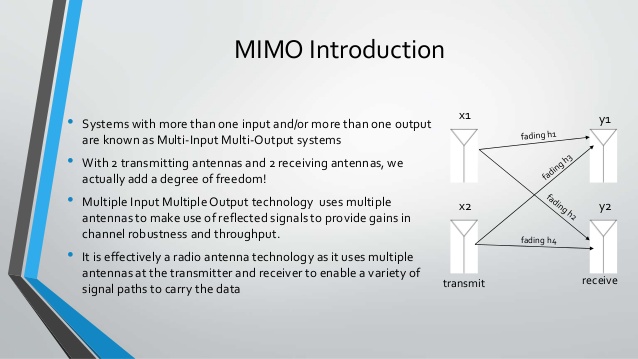 Nelle telecomunicazioni la tecnica MIMO indica l’uso di un sistema di antenne multiple intelligenti sia sul lato emittente sia sul lato ricevente, allo scopo di migliorare le prestazioni del canale di comunicazione. Questa tecnologia è di particolare interesse quando applicata alle comunicazioni digitali wireless, dato che offre miglioramenti notevoli nel throughput e nella distanza di trasmissione senza ricorrere alla necessità di aumentare la banda o la potenza di trasmissione grazie ad una maggiore efficienza spettrale.