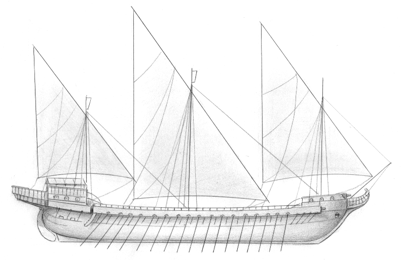 in anteprima Galeazza veneziana, da modello del Museo Storico Navale di Venezia. Naviglio inteso ad appoggiare l’azione delle galere con un maggior volume di fuoco grazie all’imbarco di più cannoni reso possibile da uno scafo maggiorato Le galere – a forza di remi e di staffile (cherini.eu)