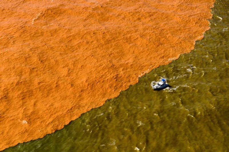 Si ritiene che la grande biodiversità del fiume Doce sia stata completamente distrutta e diverse specie animali e vegetali, incluse alcune indigene, siano ormai considerate estinte; ora la preoccupazione del mondo è  rivolta all’impatto che la marea tossica avrà sugli ecosistemi dell’Oceano Atlantico. La foto mostra un pesce agonizzante nei liquami del Rio Doce. Si parla di milioni di pesci morti per asfissia, un tempo principale risorsa delle tribù indios lungo il fiume.