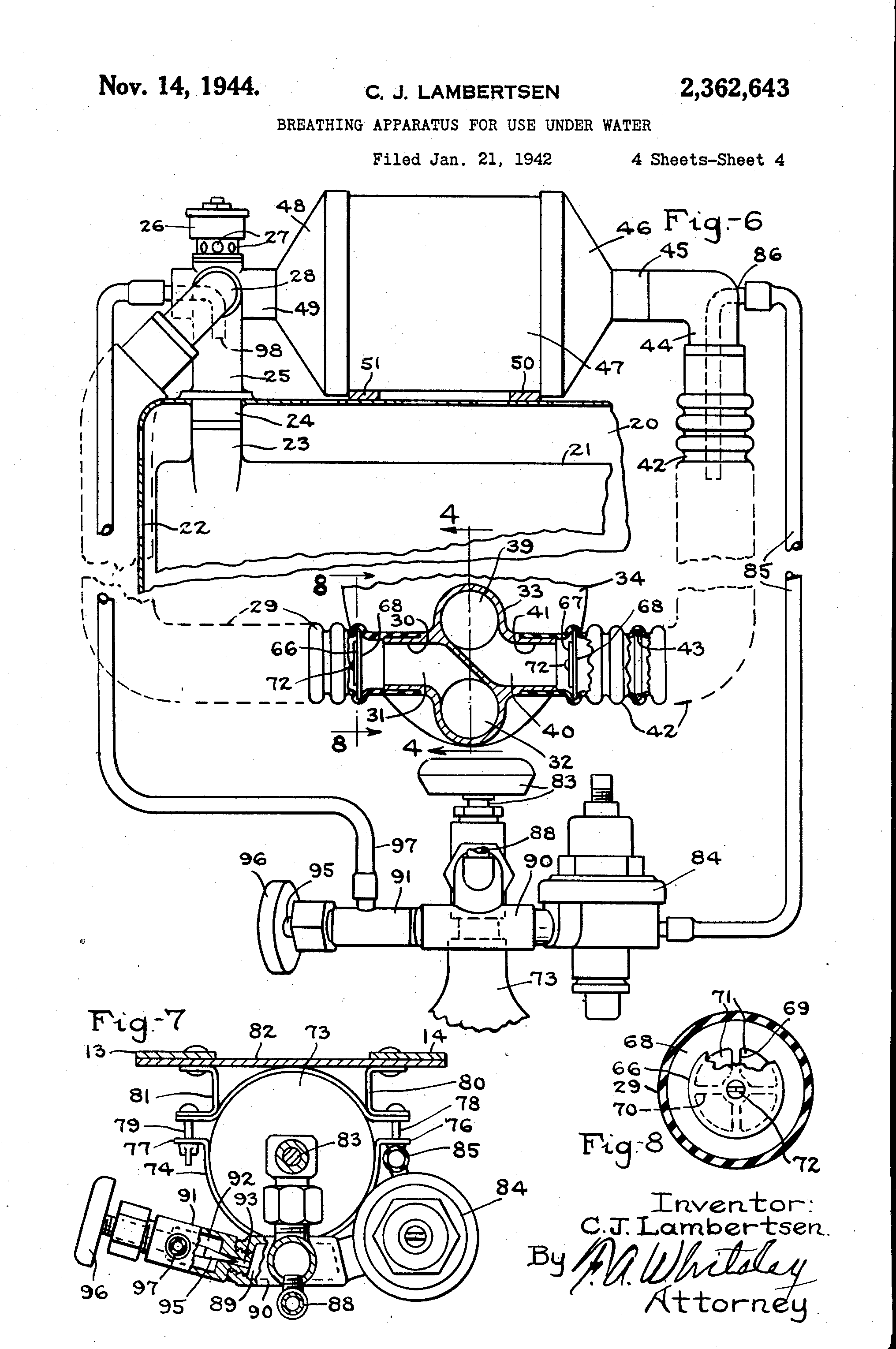 Si racconta che lui stesso si tuffò nella piscina dell’Omni Shoreham Hotel e dimostrò l’efficacia della sua invenzione come dispositivo autonomo di respirazione subacquea.