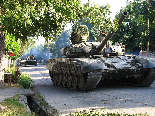 in anteprima, agosto 2008, un carro armato russo in South Ossetia – autore Yana Amelina (Амелина Я. А.) South Ossetia war russian tank.jpg – Wikimedia Commons