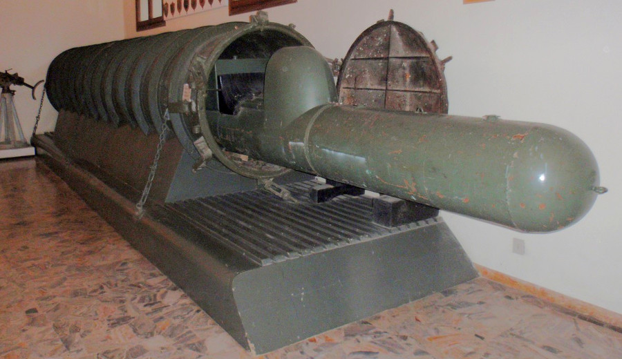 particolare del siluro a lenta corsa utilizzato da Tesei e Pedretti a Gibilterra 30 ottobre 1940 – oggi conservato nella base del Varignano, La Spezia