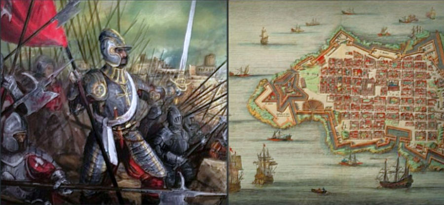 Le difese dei Cavalieri sono concentrate nell’area del Porto Grande, a Forte Sant’Angelo, all’estremità della penisola di Borgo (Birgu), in tutto centoquarantacinque cavalieri e poche centinaia di soldati.