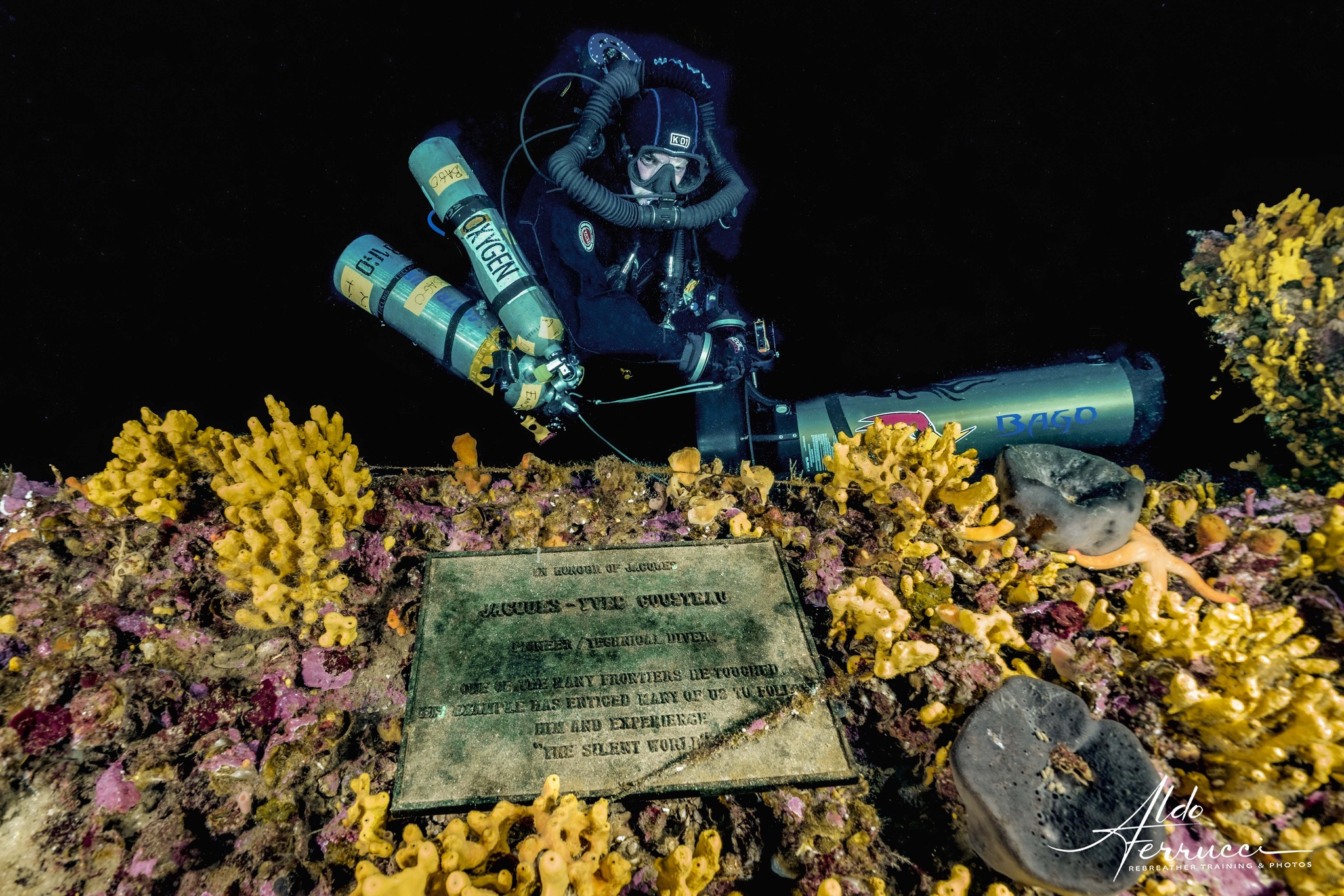 in anteprima la targa lasciata in ricordo della scoperta del RMS Britannic da parte di Cousteau – photo credit Aldo Ferrucci