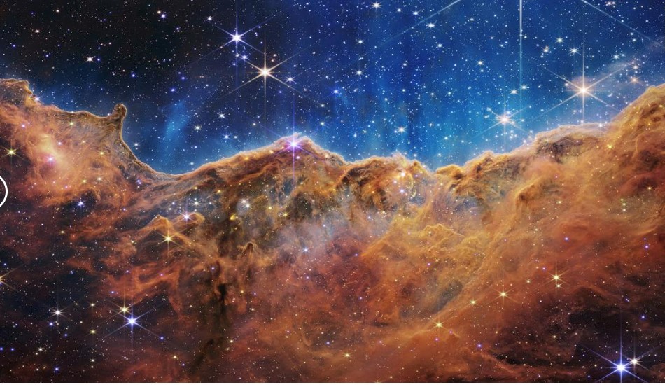 Si tratta in realtà del bordo di una regione stellare chiamata NGC 3324 nella Nebula di Carina. Catturata nella luce a infrarossi dal nuovo telescopio spaziale James Webb della NASA, questa immagine ha rivelato per la prima volta delle aree precedentemente invisibili sulla formazione delle stelle, un insieme luminoso e gassoso che ci mostra la formazione di stelle a circa 7.600 anni luce dalla Terra. Quello che impressiona particolarmente sono le “scogliere cosmiche” di Carina, mostrate in dettagli sbalorditivi. Si tratta di centinaia di stelle neonate, precedentemente invisibili ai telescopi, che brillano in tutto il paesaggio gassoso della nebulosa. Jets e vortici della polvere turbinano attraverso l’immagine, creando strane strutture sconosciute che gli scienziati non sono ancora in grado di identificare. L’importanza di studiare delle nebulose come Carina è la possibilità di comprendere meglio i meccanismi sulla nascita delle stelle, esplorando le origini del nostro sistema solare.