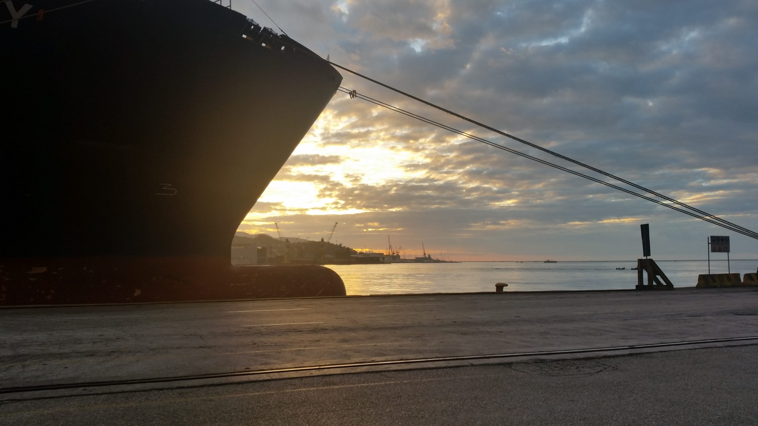 imbarco di container portuale. Nella foto l’autore della foto, ex dirigente del porto container di La Spezia – photo credit Giancarlo Calcagnini