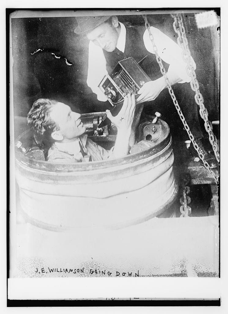Ma la novità e la straordinarietà di J.E. Williamson è che lui per primo filma davvero sott’acqua, dando inizio ad un’altra grande sfida: esplorare e raccontare un mondo sottomarino, conosciuto fino ad allora solo attraverso quello che usciva dalle reti dei pescatori. Come Verne, Méliès combatte con giganteschi granchi, piovre e cavallucci marini soltanto immaginati. I fratelli Lumière avevano in catalogo un film dal titolo L’Aquarium, realizzato appunto in un acquario. Williamson, dentro la sua fotosfera, il mondo marino lo porta davvero sugli schermi delle sale cinematografiche in tutta la sua vitalità.
