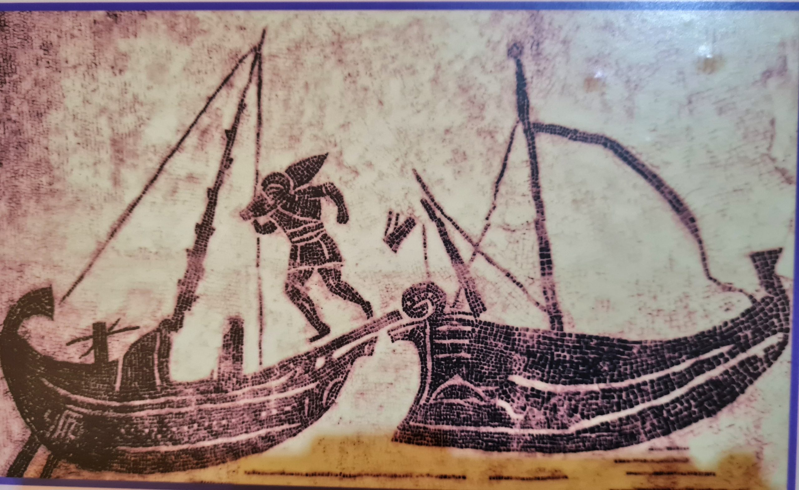 [63] Com’è noto, l’evoluzione delle navi nel basso Impero non seguì il criterio della meccanizzazione. Il problema della difficoltà di reperimento degli equipaggi di rematori favorì invece la scelta di navi dotate di un minor numero di remi e di un maggior numero di alberi per le vele, come nei dromoni.